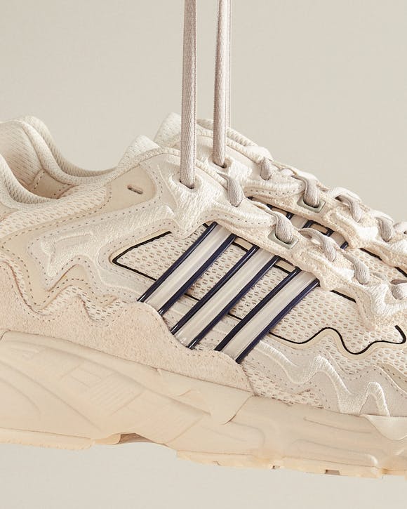 US Men's Sizing - A versatile and wearable silhouette takes the Bad Bunny formula and applies it to an off-white colorway with hairy suede, mesh, and a black tip detailing to the three stripes. This premium silhouette features a rubber sole, 3-Stripes, and the all-seeing eye branding characteristic of the Bad Bunny partnership.
