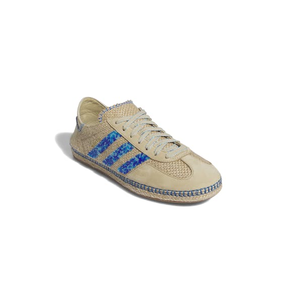 Linen Khaki/Light Blue/Blue Bird Sneakers with Premium hemp and suede upper. Unique stitching throughout. Espadrille inspired sole unit.