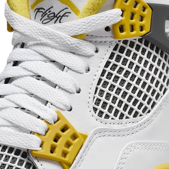 Debuting a charged Vivid Sulfur colorway, this AJ4 returns with a fresh look for another victory lap. The crisp White leather upper serves as a clean backdrop for pops of Vivid Sulfur and Anthracite to highlight the eloquent design language from its '89 hoops origins. Plus, it comes complete with all the original trimmings: a bold Jumpman tongue logo, netting at the quarter and tongue panels and the famous "wings" that let you customize your laces. Whether you're dressing them up or keepin' it low-key casual, this AJ4 is the perfect off-court flex.