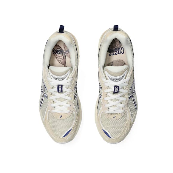 The COSTS x ASICS collaboration seamlessly integrates the shared signature blue color into the design, appearing on the stripes, GEL™ technology, heel loop, and the outsole, complementing the overall beige for a nostalgic aesthetic. The sockliner showcases distinctive SHAO JI prints from Southern China, symbolizing the traditional Chinese craftsmen's cherished connection between humans and nature.