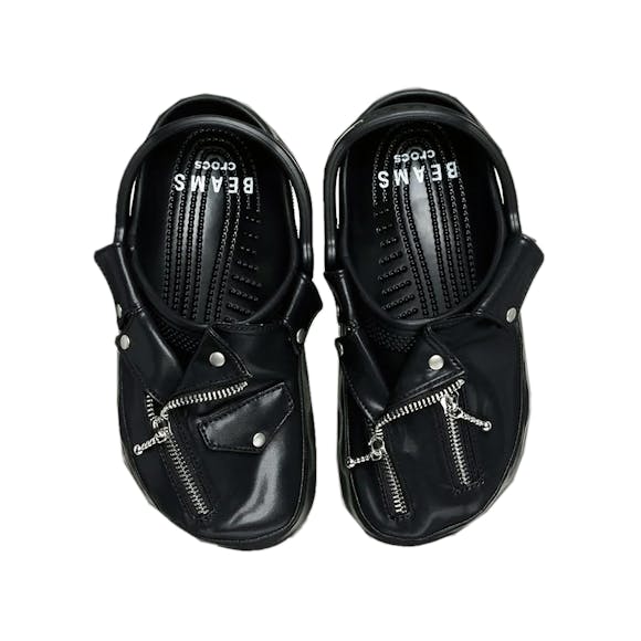 The exclusive collection from BEAMS x Crocs has you covered in two edgy styles. Go your own way in leather jacket Classic Clog with studded Jibbitz™ charms or slide into the embroidered souvenir jacket Dylan Clog for comfortable style with edge. Extremely limited quantities, grab yours before they’re gone.