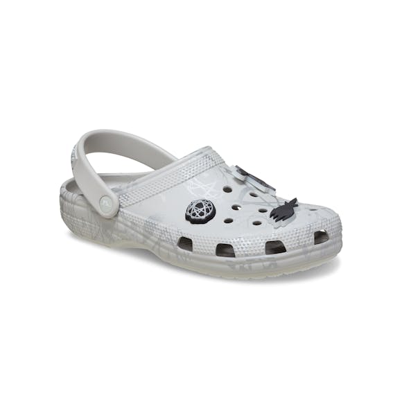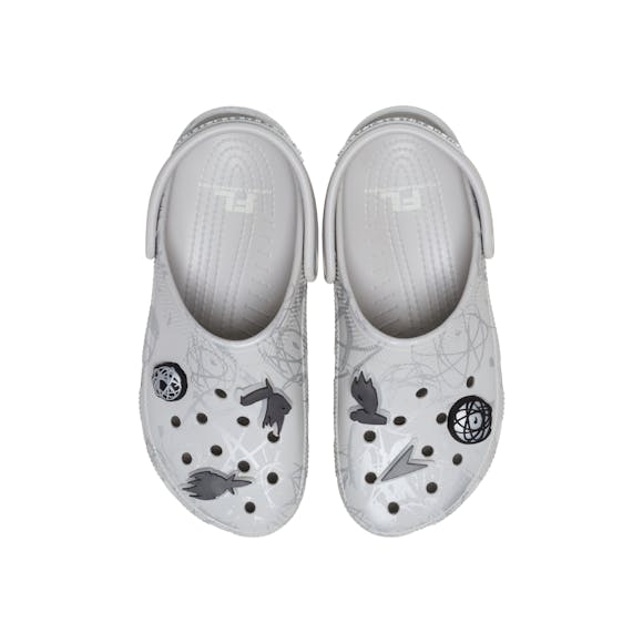The limited-edition Crocs x FuturaLaboratories collection has landed in two colorways featuring Futura’s signature artstyle. The green colorway features a vibrant and nebulous pattern, while the white colorway shows off achromatic print featuring reflective brush strokes against the canvas of the Classic Clog. Both futuristic styles are topped with 6 exclusive Jibbitz™ charms featuring some of Futura’s most iconic characters and symbols. This collection is comfortable, versatile, and a bold statement to take to the streets.