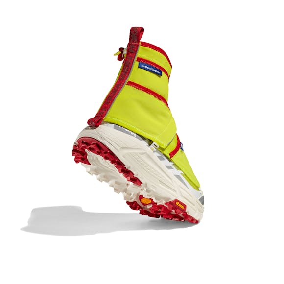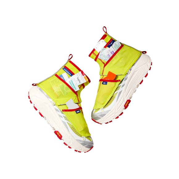 Making a name for herself by challenging perceptions about waste, Nicole McLaughlin is known for her sustainable, tongue-in-cheek designs. HOKA partnered with the Boulder-based designer to overhaul the Mafate Three2, topping Hoka's cushy bottom unit with a full- coverage, four-in-one gaiter system. Finished with five utility pockets and co-branded labels, this street-ready spinoff features a cinched entry and Velcro heel spike.