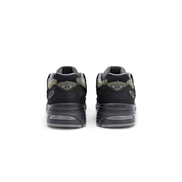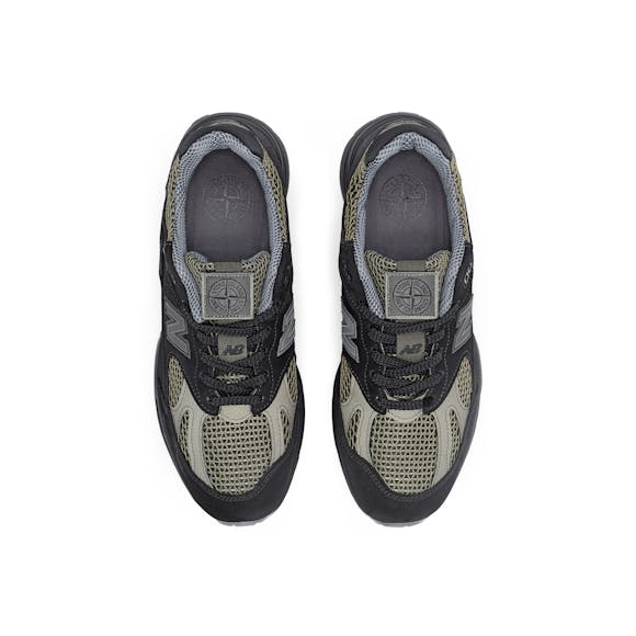 this icon enters a new era, with the MADE in UK 991v2. The updated silhouette makes its debut with a collaborative Stone Island design. Stone Island’s vision for the 991v2 takes cues from the adapted industrial spaces that served as venues and clubs. Rendered in a decidedly utilitarian olive, grey, and black palette, the Stone Island MADE in UK 991v2 features a mesh upper inspired by latticed metal and overlaid with nubuck. Coated, texturized leather foxing and an array of reflective accents place further tactile and visual emphasis on the industrial space concept. Co-branded details and custom packaging, featuring the Stone Island Compass logo, round out this stirring introduction.