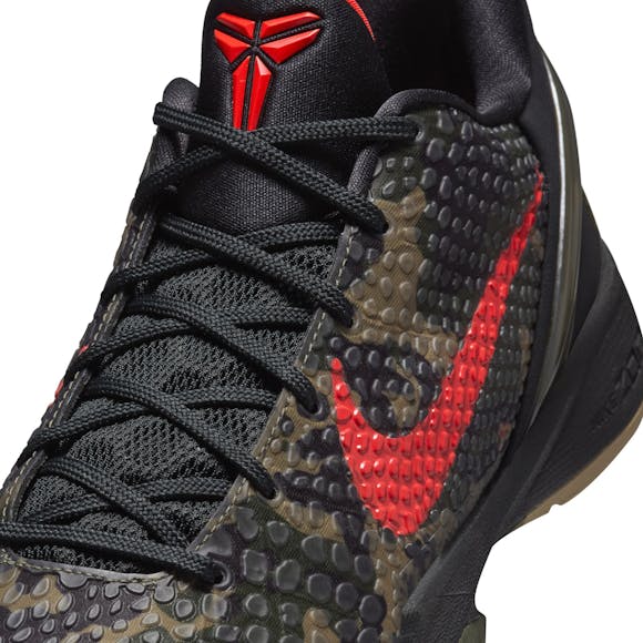 Kobe called Italy home for seven years. It was during those formative years that Kobe fell in love with the game, so we brought back the 2011 colorway as a tribute to the era. Drawing inspiration from Italian military fatigues along with Italy's diverse landscape, the snakeskin camouflage fosters an earthy finish that represents the intersection of natural beauty and urban life. Inspired by soccer cleats, the lightweight and low-profile design comes complete with an Air Zoom unit in the forefoot for a snappy response.