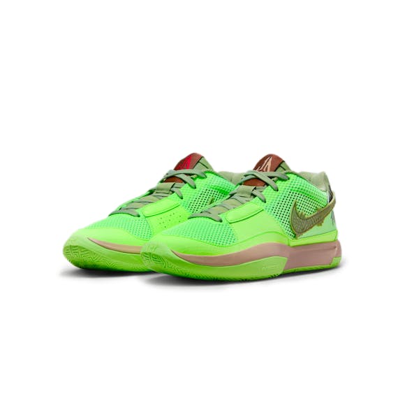 Ja Morant became the superstar he is today by repeatedly sinking jumpers on crooked rims, jumping on tractor tires and dribbling through sun-stained traffic cones in steamy South Carolina summers. The Ja 1 is a testament to his rise. With Zoom Air, it supports bunny hops and hyper speed without sacrificing comfort, so that you can control your own destiny on the court, Ja-style. This special design pays homage to Ja’s in-your-grill, on-your-head style with homages to his favorite dunk and his team's heritage.