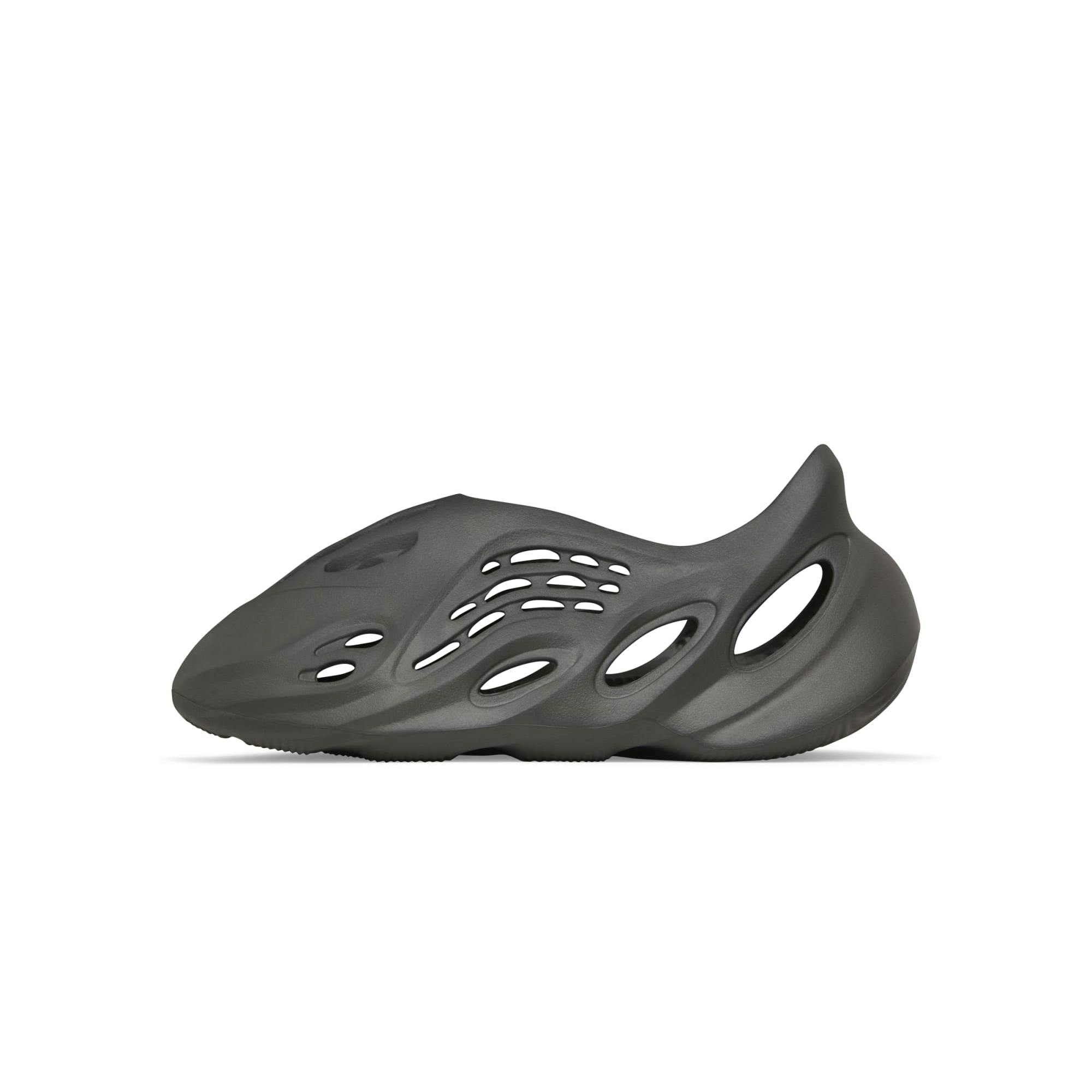 The YZY FOAM RNR Carbon, which is made in the U.S.A., features injected EVA foam to provide lightweight durability. This model is made using algae harvesting technology that helps to keep lakes clean. The soft top layer in the footbed offers immediate step in comfort. The strategically mapped vents around the foot provide air flow and breathability. Additionally, the YZY FOAM RNR will usher in a new box construction that requires less material, which leads to less cardboard material waste.
