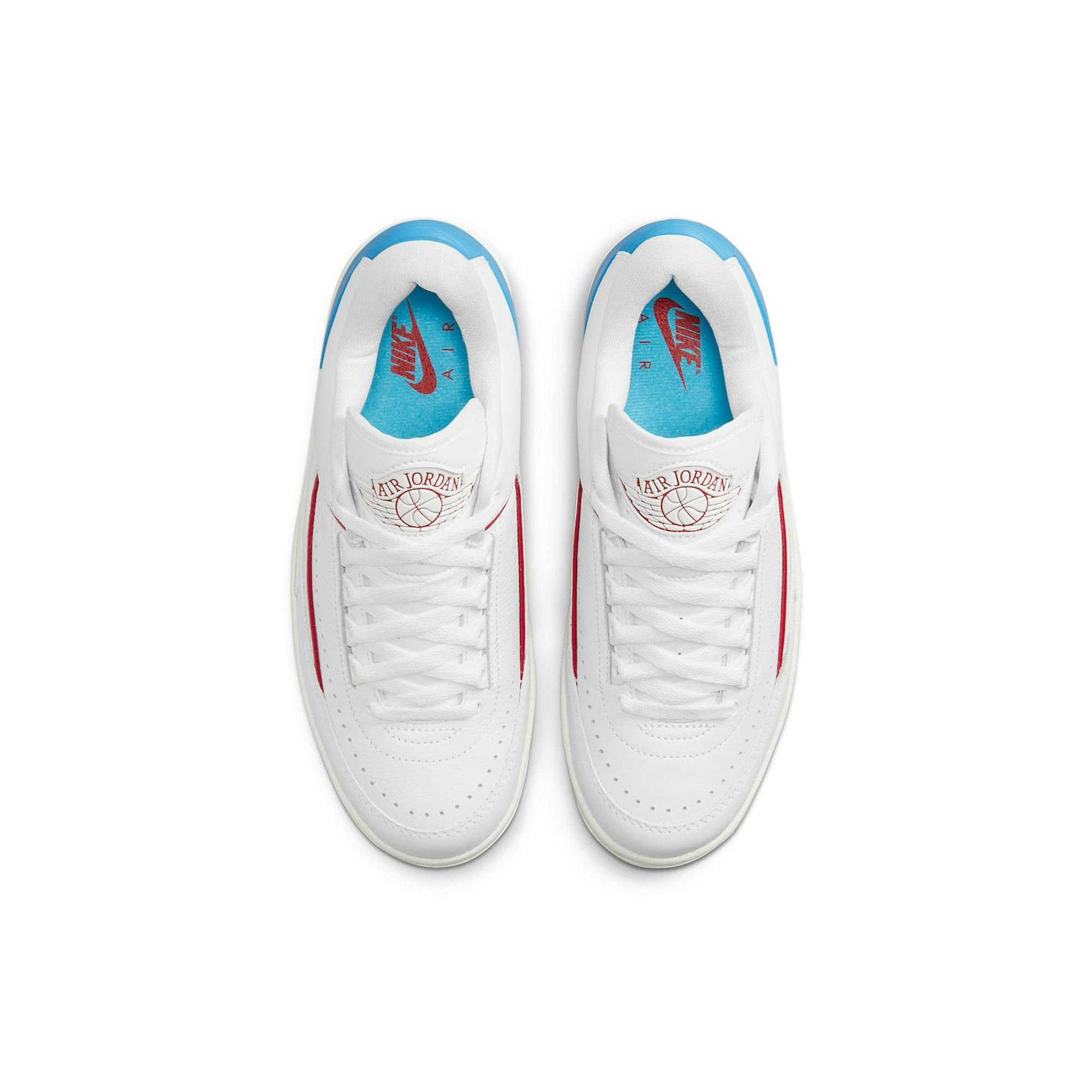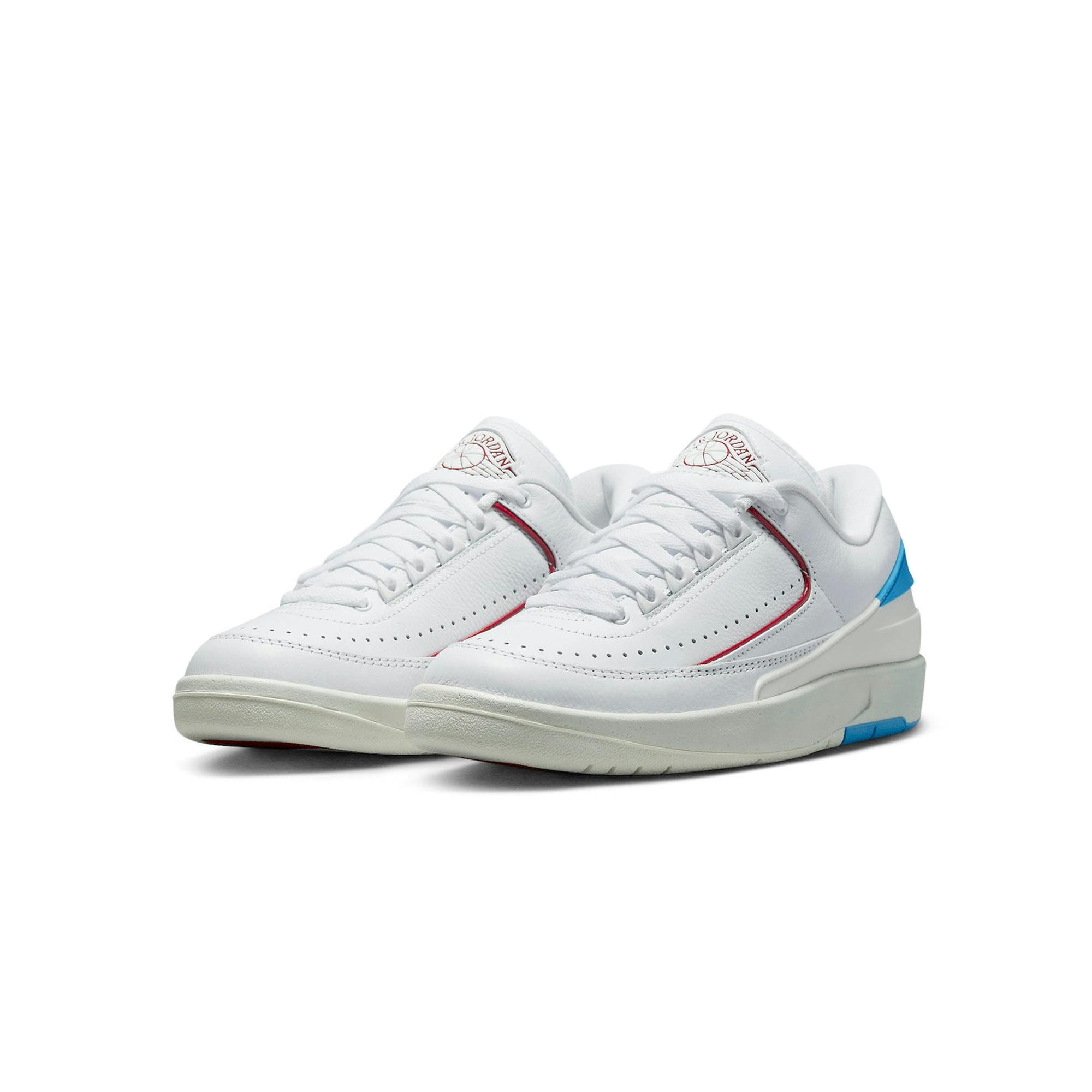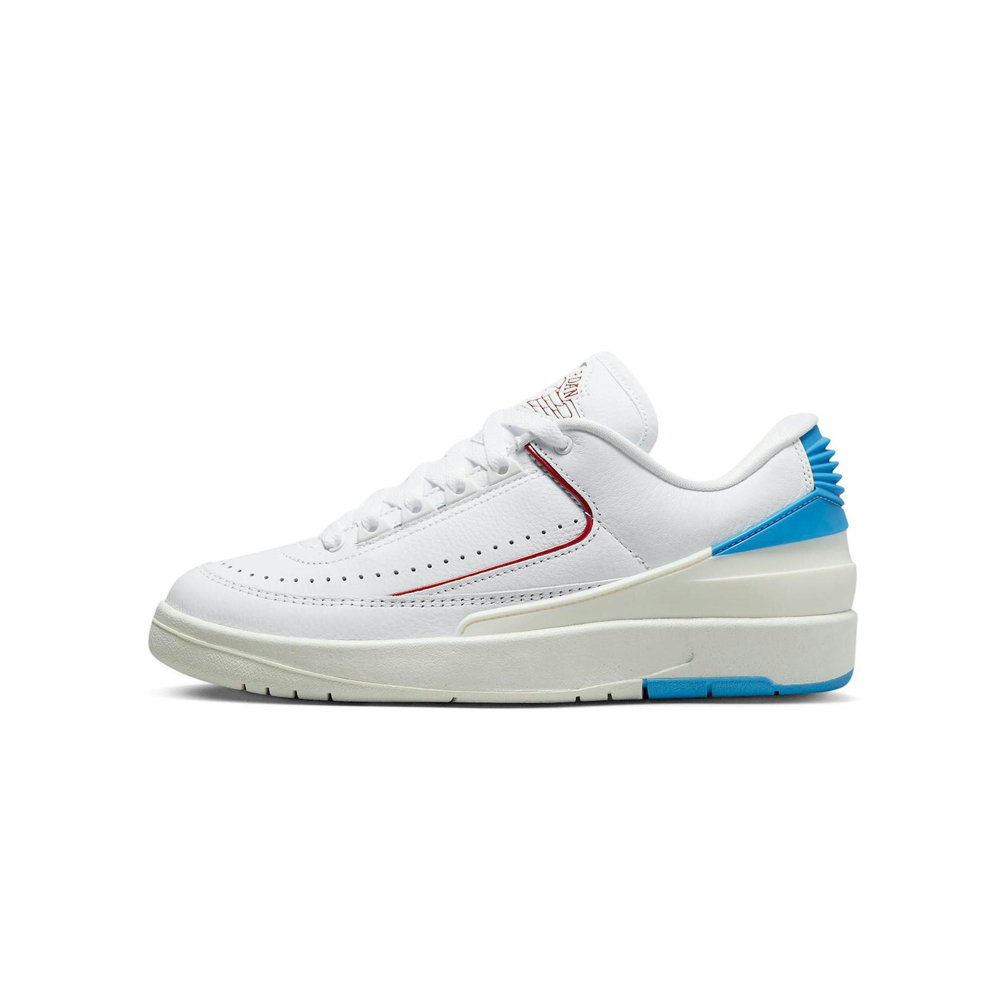 This Air Jordan 2 Low pays homage to Jordan's college days in UNC while also paying tribute to his NBA career with the Chicago Bulls. Details include a white leather upper paired with red contrasting accents on the piping and “Wings” logo on the tongues.