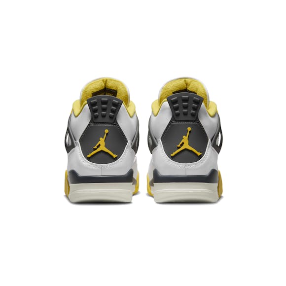 Debuting a charged Vivid Sulfur colorway, this AJ4 returns with a fresh look for another victory lap. The crisp White leather upper serves as a clean backdrop for pops of Vivid Sulfur and Anthracite to highlight the eloquent design language from its '89 hoops origins. Plus, it comes complete with all the original trimmings: a bold Jumpman tongue logo, netting at the quarter and tongue panels and the famous "wings" that let you customize your laces. Whether you're dressing them up or keepin' it low-key casual, this AJ4 is the perfect off-court flex.